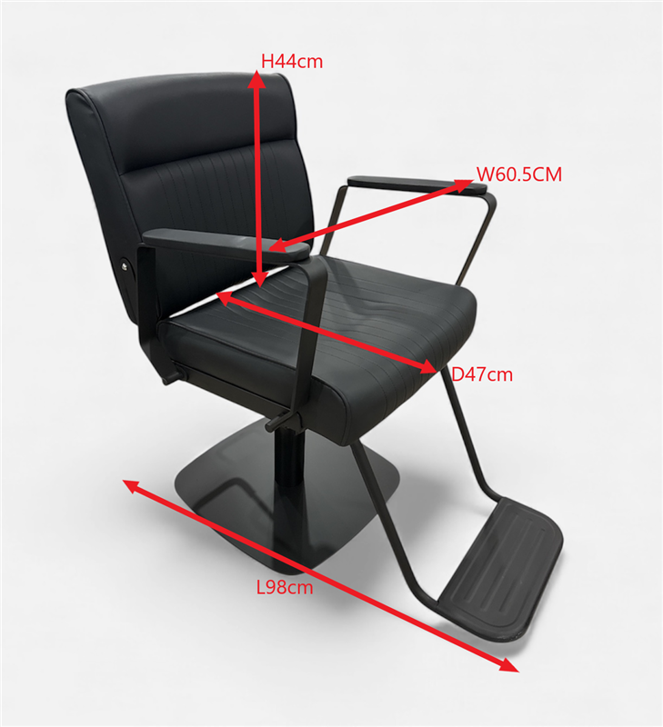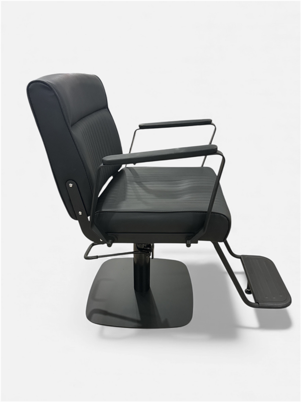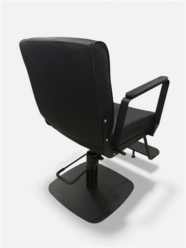 • Modern, minimalist hairstyling chair in full black finish