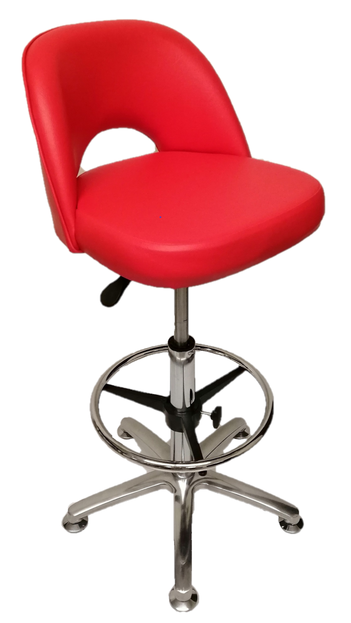 Piston Gas Lifted Counter/Reception Chair. Equipped with Aluminium Star Base, rubber studs and adjustable foot rest ring.
