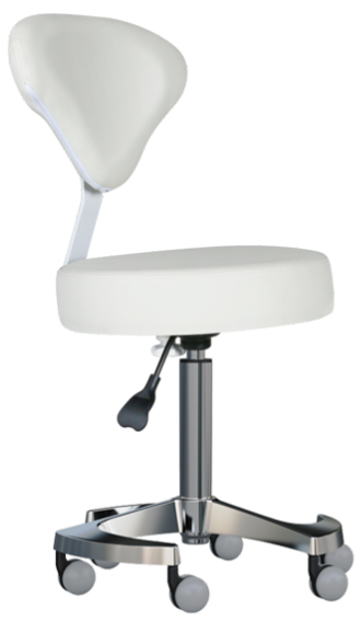 Beautician stool with premium white vinyl and 6 wheels wing base