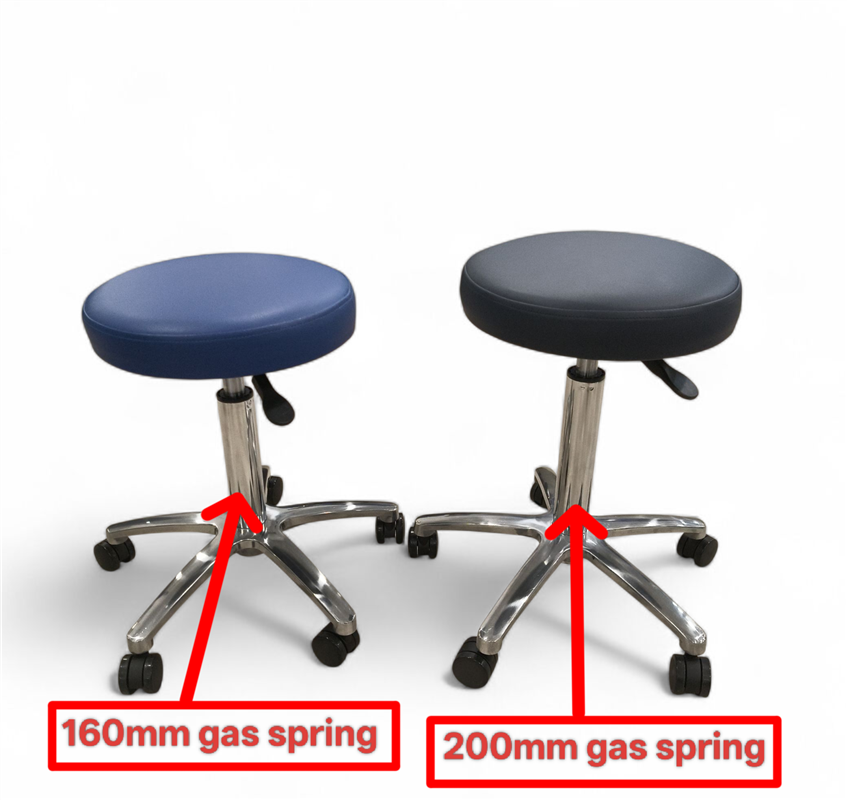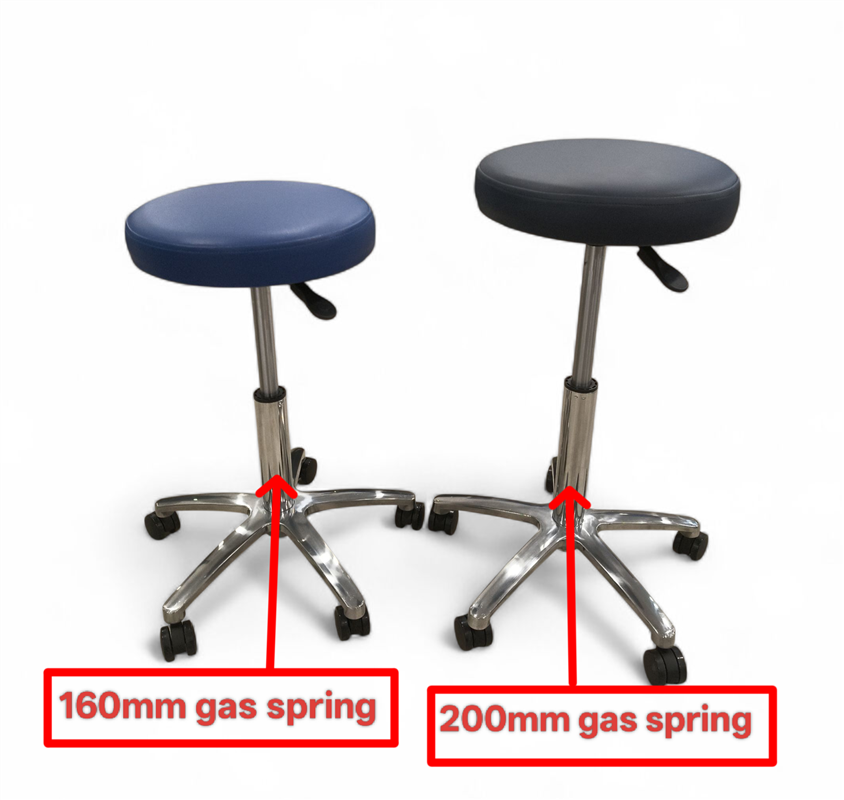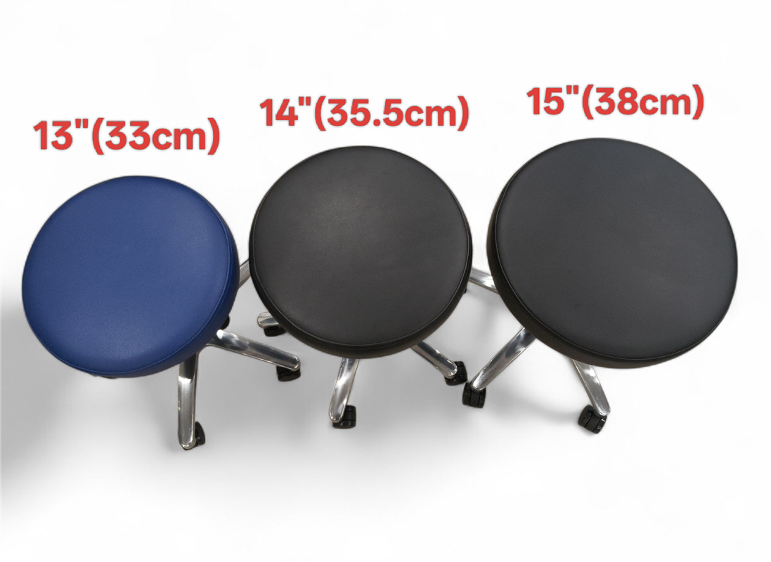 Note: Standard height and size is Option 1: Adjustable Height using 160mm gas spring (lowest 46cm - highest 61cm), with seat Diameter 13inches (33cm) and Thickness 2.5inches (6.4cm).